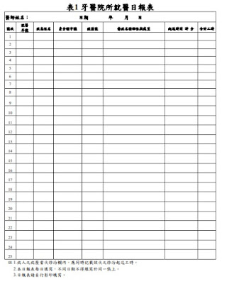 3、醫療品質監控期醫師個人之牙醫院所就醫日報表(表 1)。